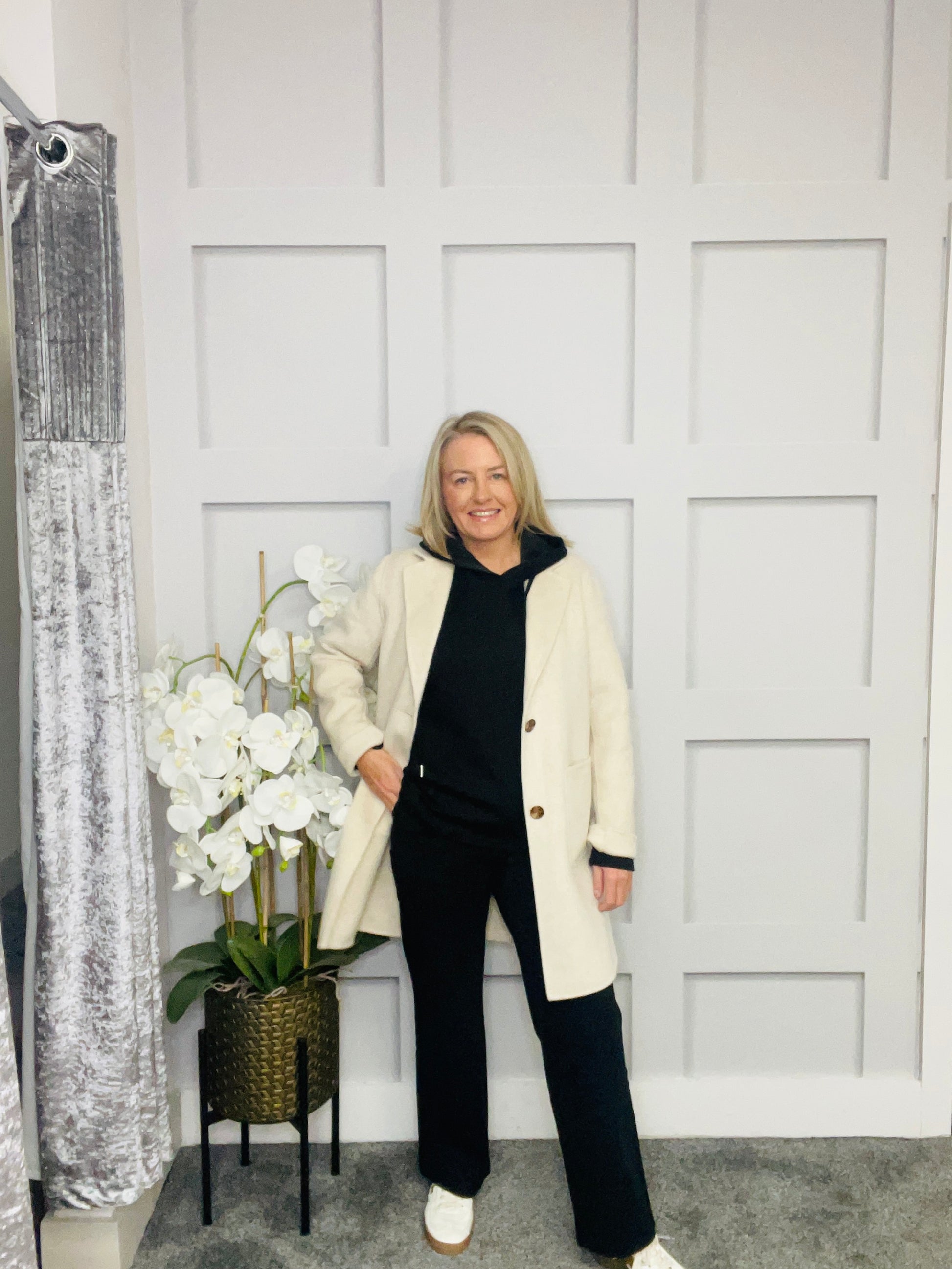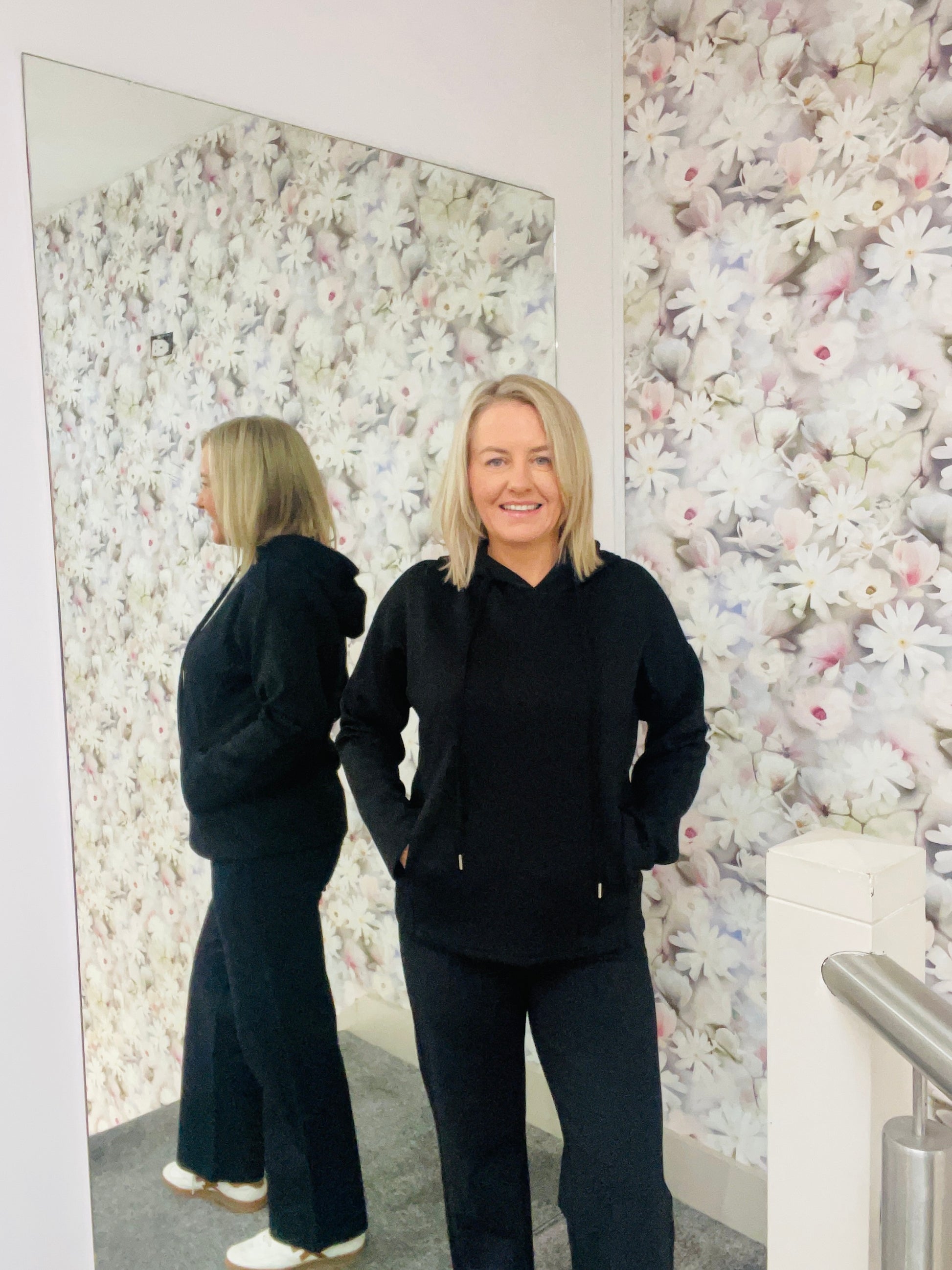 Plain sweatshirt effect t-shirt with hooded adjustable by drawstring. Straight design. Simple long sleeve. Low straight.