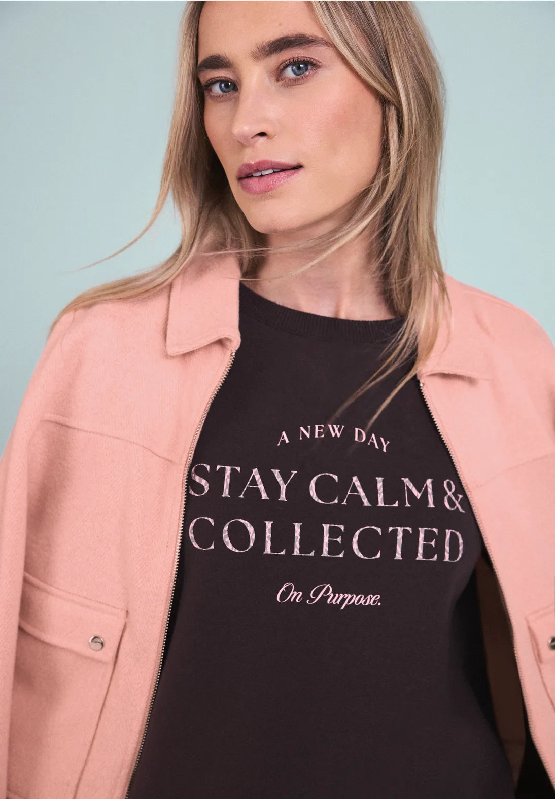 The Herringbone Blouson by Street One for women convinces in everyday life with shirt collar, long sleeves, zipper and patch pockets with buttons - as well as an elastic waistband for optimal fit. The cotton blend brings comfort and a clean, versatile look. Choose this model if you are looking for an uncomplicated casual jacket with style.