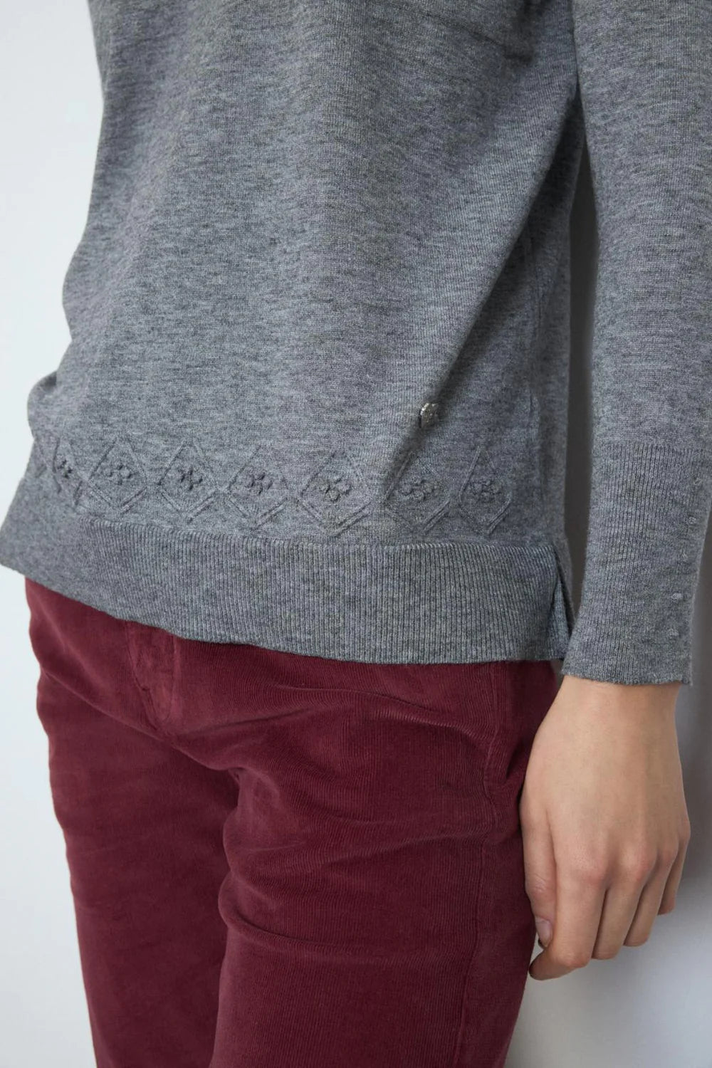Fine knit plain basic sweater. Ve-neck. Straight design. Long sleeve. Straight low with side openings.