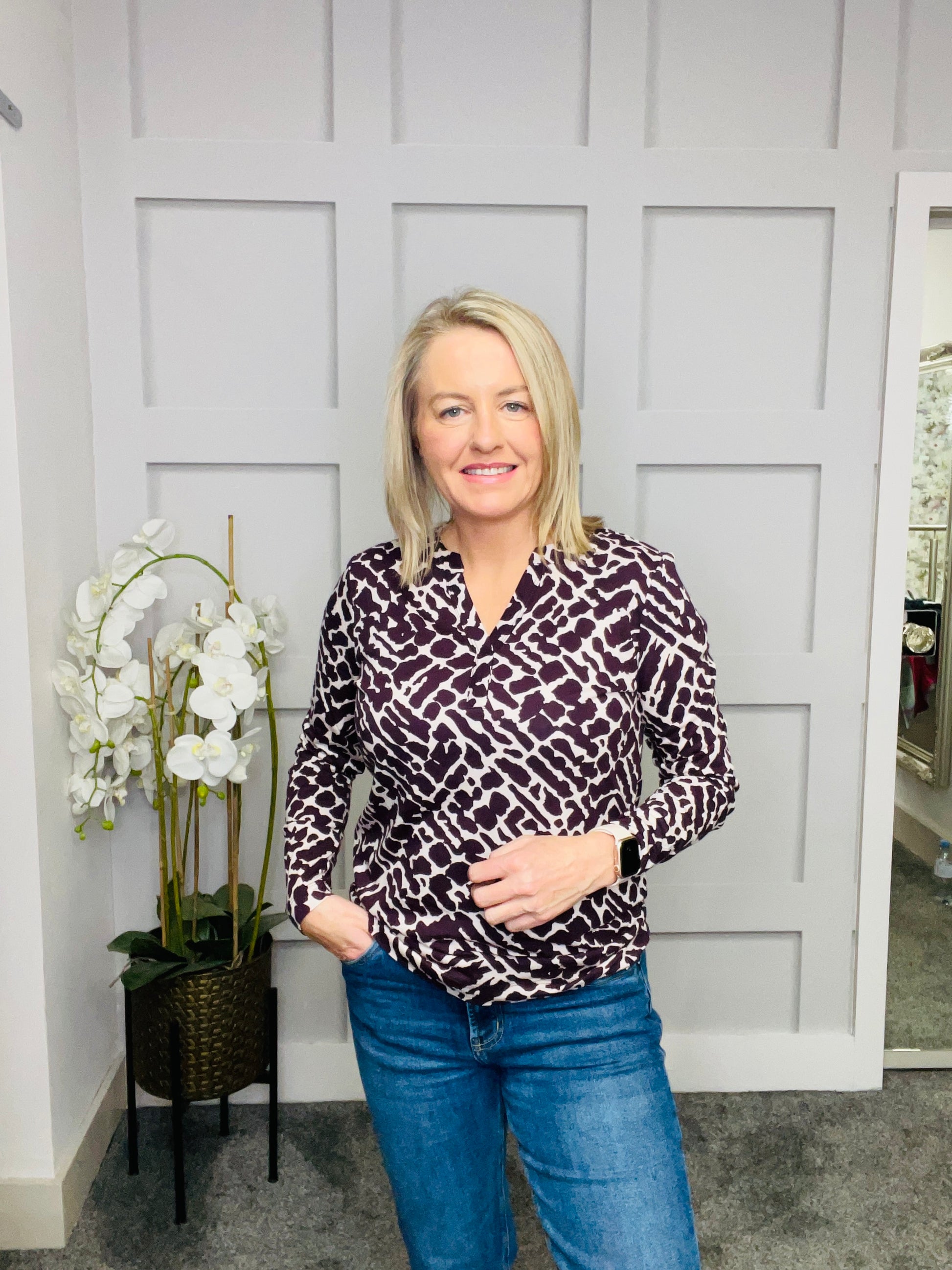 The patterned tunic shirt by CECIL for women impresses with its split neck and a modern all-over print. The soft cotton-modal blend ensures high wearing comfort and a flowing fit. Ideal for stylish casual looks with a fashionable flair.