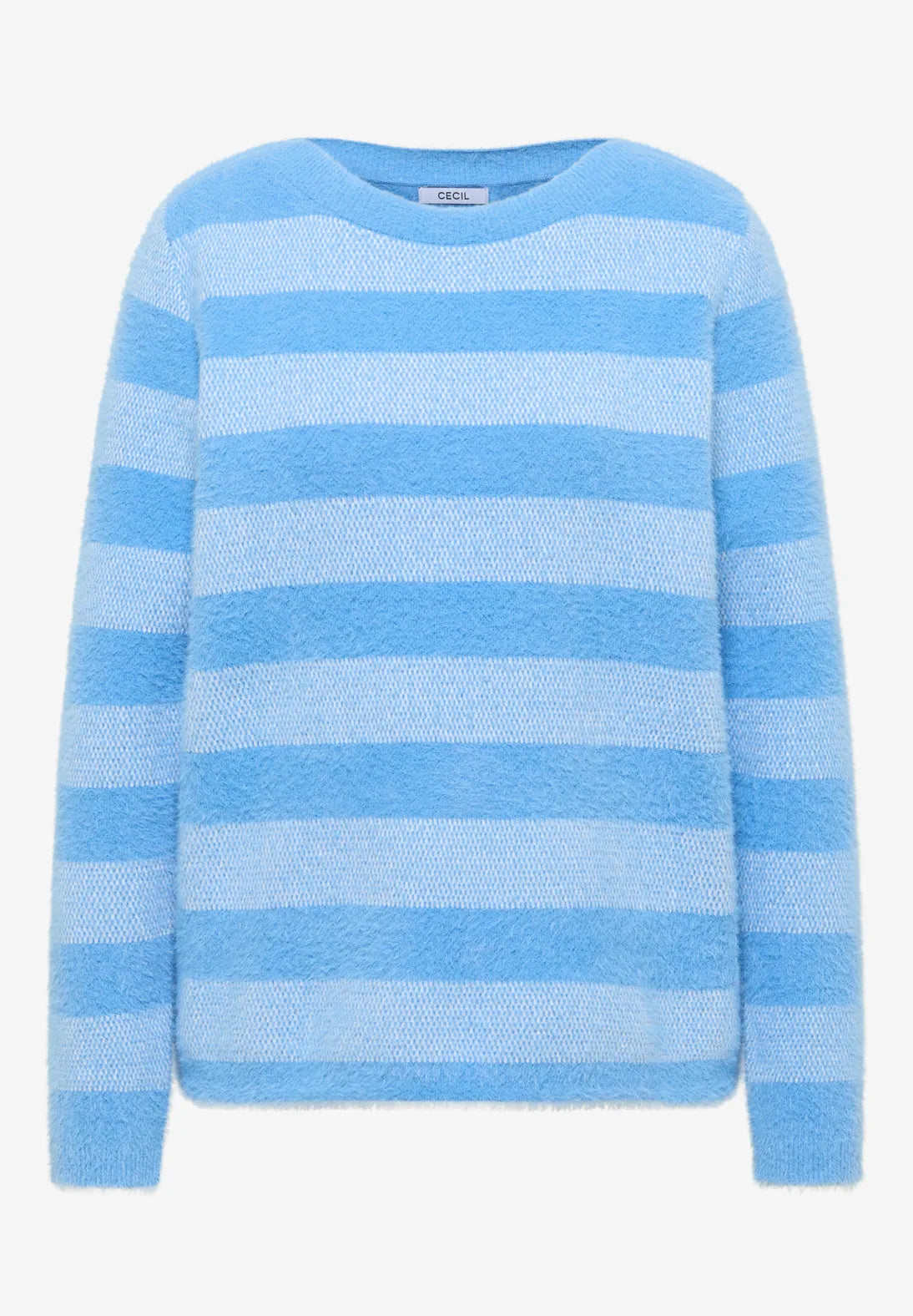 The cosy knitted sweater by CECIL inspires with a striped pattern and soft feather yarn. The round neckline and long sleeves underline the cosy style. Ideal for feel-good moments with a fashionable touch.